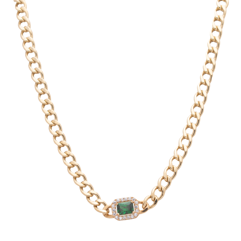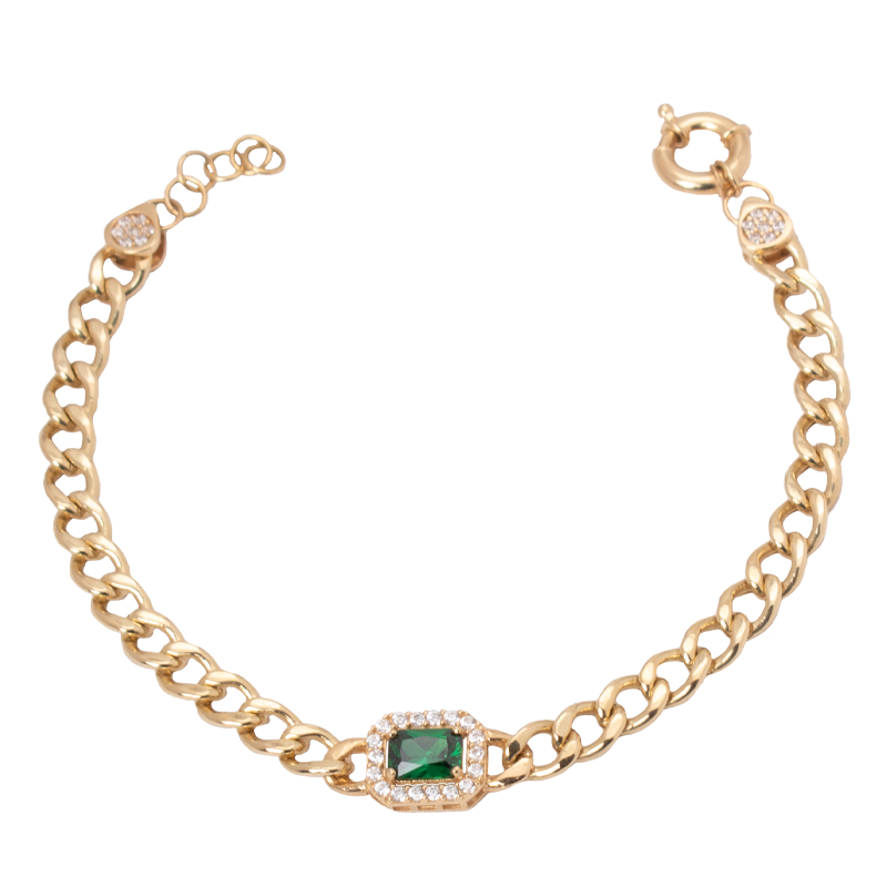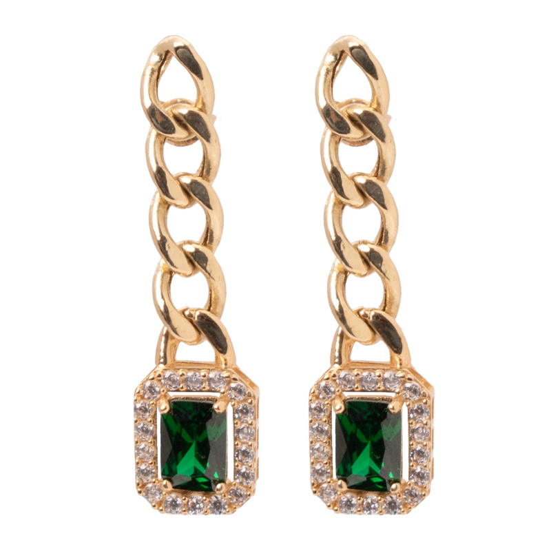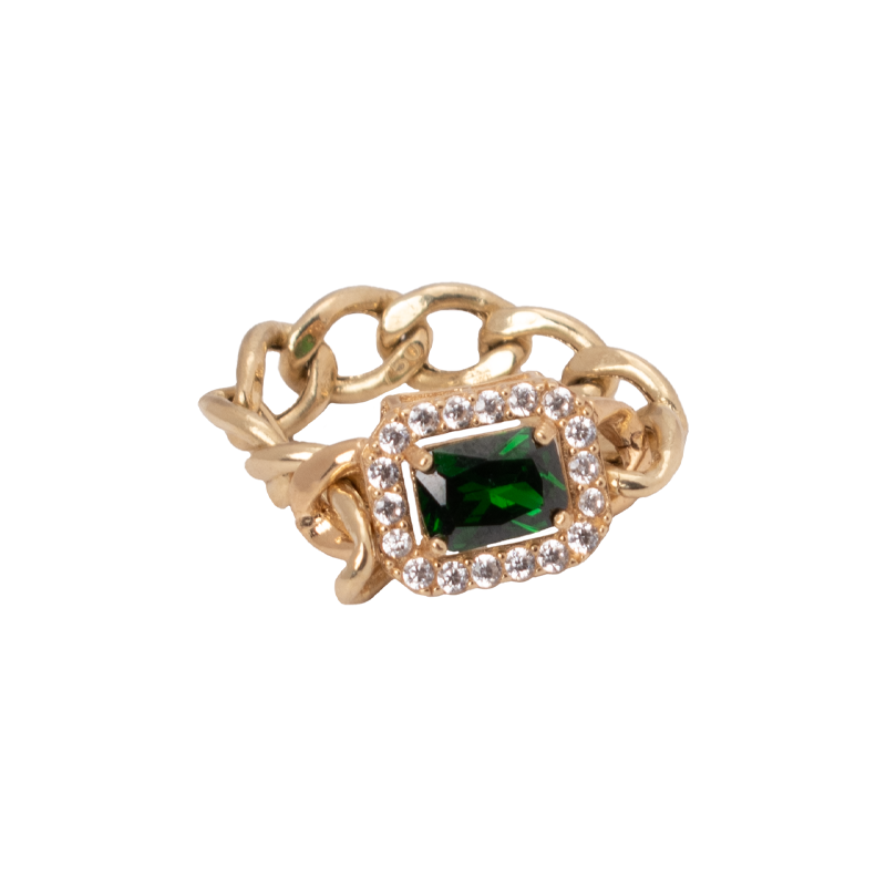 طقم ذهب عيار 18 بسلسلة حلقات وحجر أخضر