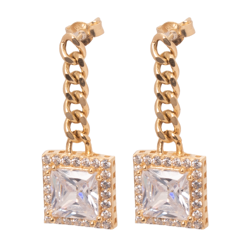 طقم رجوه عيار 18 بتصميم حلقات وفص مربع لامع