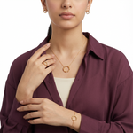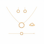 طقم عيار 18 من الذهب، بتصميم دائرة مجدولة، يتكون من عقد بتعليقة دائرة، أقراط، خاتم وأسورة.