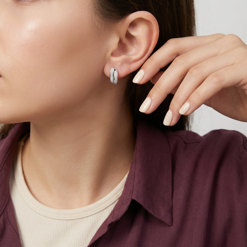 أقراط بتصميم مبتكر أنيق متداخل ليمنح إطلالتك لمسة من الرقي و التفرد، سهل تنسيقة مع جميع الأقراط الأخري المفضلة لديكي.