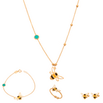 ضيفي لمسة أنيقة علي أطلالت أطفالك مع طقم النحل الملون، المكون من أربع قطع عقد، خاتم، أقراط وأسورة.