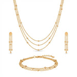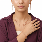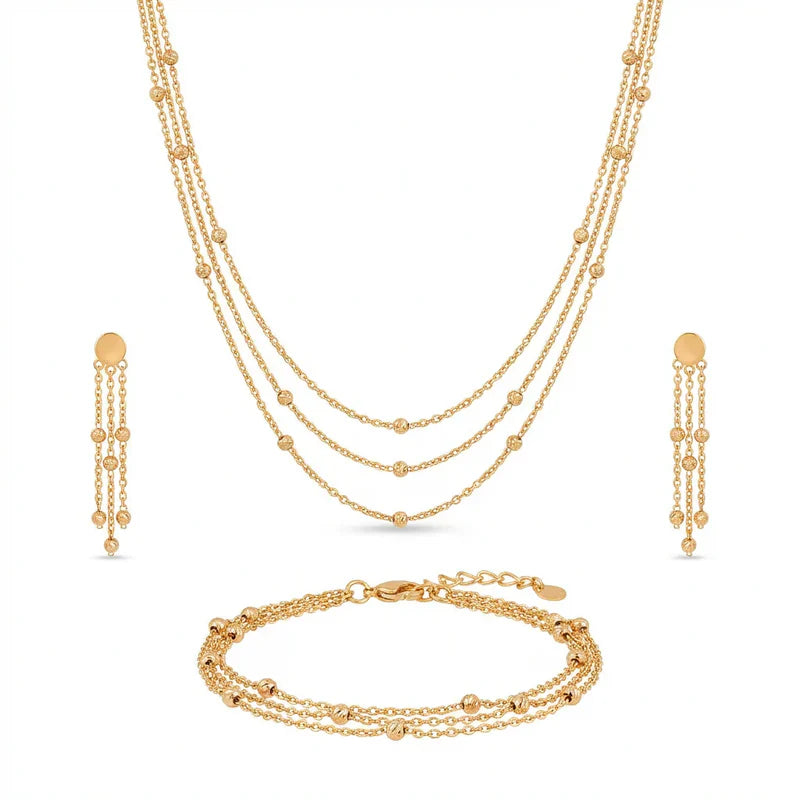 سعر الوحدة لكلنصف طقم ذهب 3 أدوار من الذهب اللامع يتكوّن من عقد بتصميم سلاسل دائرية متشابكة، مع أسوارة وأقراط أنيقة. يتميز بتصميم عصري راقٍ يناسب مختلف الأعمار والأذواق، ويمكن ارتداء قطعه معًا لإطلالة فخمة أو بشكل منفصل للاستخدام اليومي. ذهب براق سهل العناية، لا يتأثر بمرور الوقت، ويمنحك لمسة أنيقة تناسب العمل والمناسبات والسهرات، كما يعد اختيارًا مثاليًا كشبكة عروس أو هدية راقية لا تُقاوم.