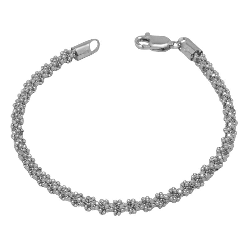 انسيال من غامية مصنوعة من ذهب أبيض عيار 18 بتصميم خرز ناعم متداخل يمنحها لمسة فاخرة وجاذبية لافتة. تتميز بلمساتها الراقية التي تضيف أناقة بسيطة لإطلالتك اليومية أو المسائية، مما يجعلها قطعة مثالية للإهداء أو لاقتناء مجوهرات خالدة.
