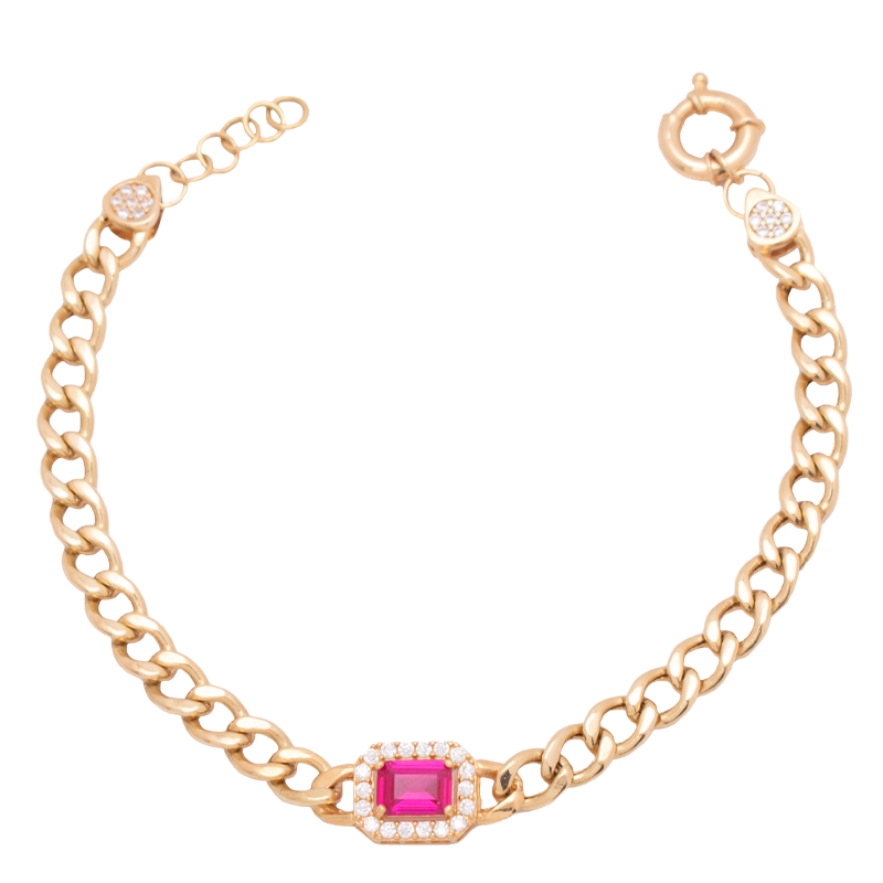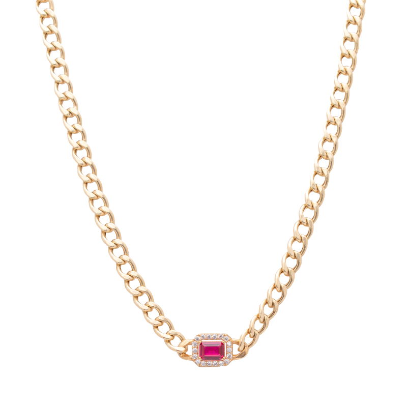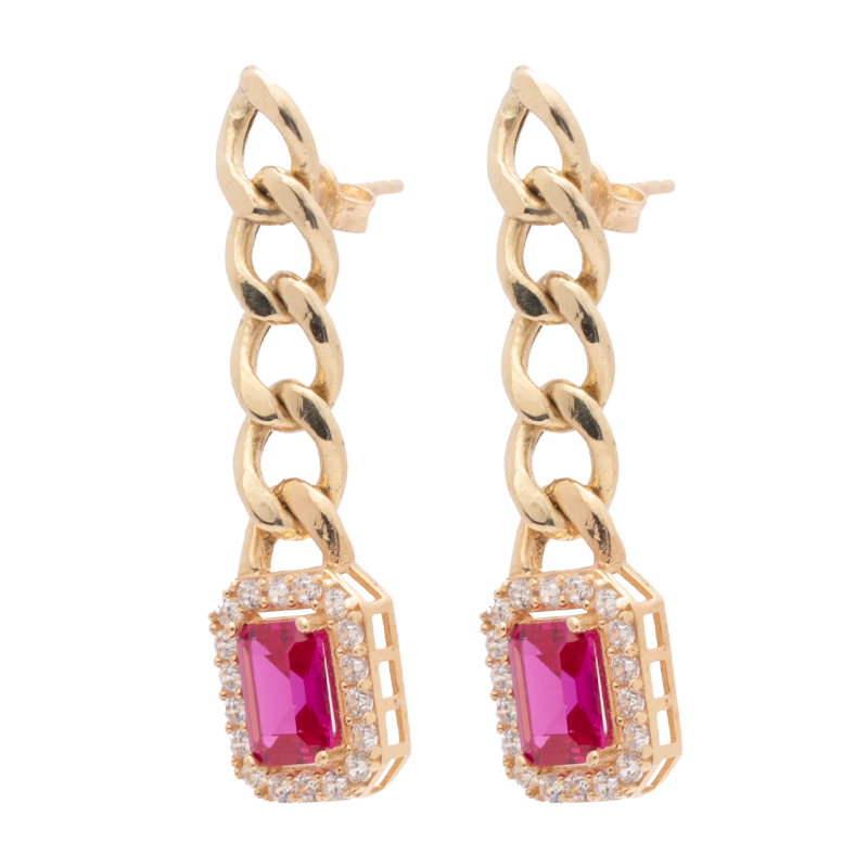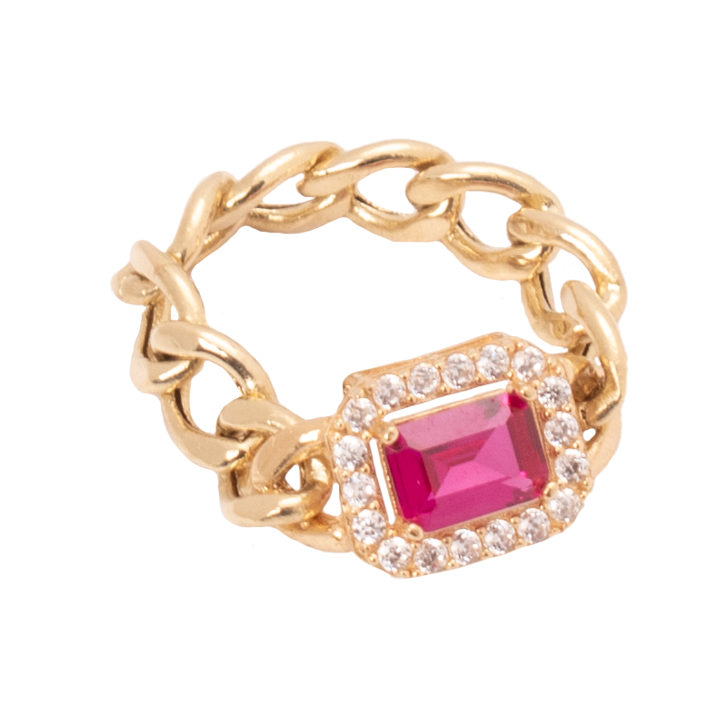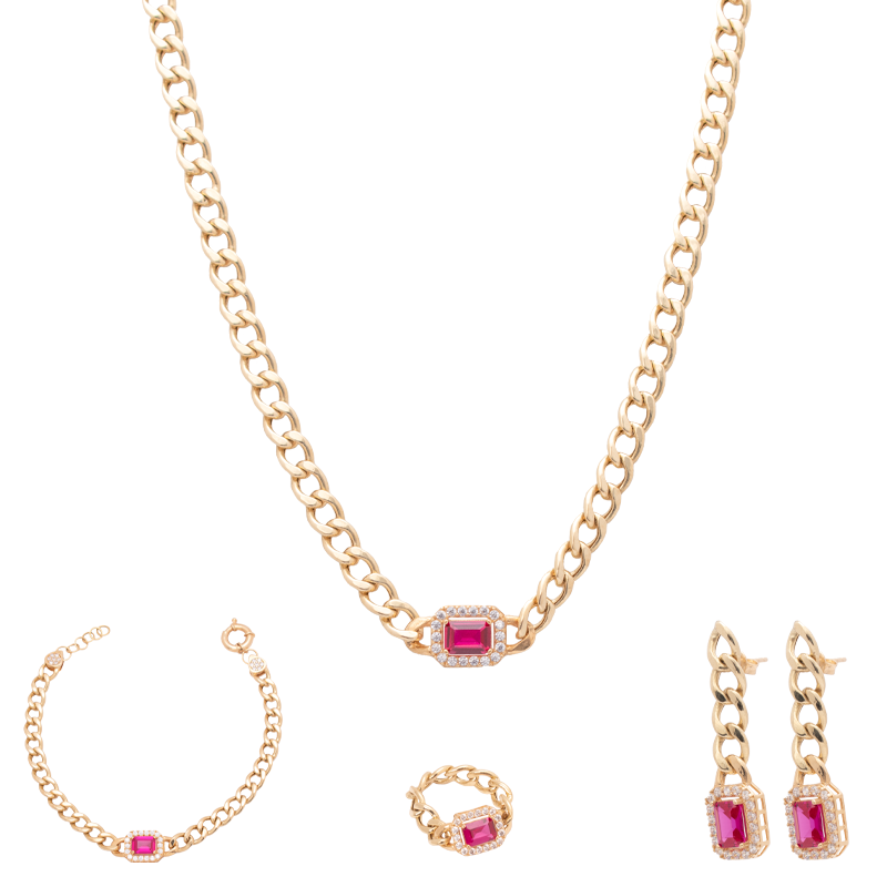 طقم ذهب عيار 18 بسلسلة حلقات بفص أحمر