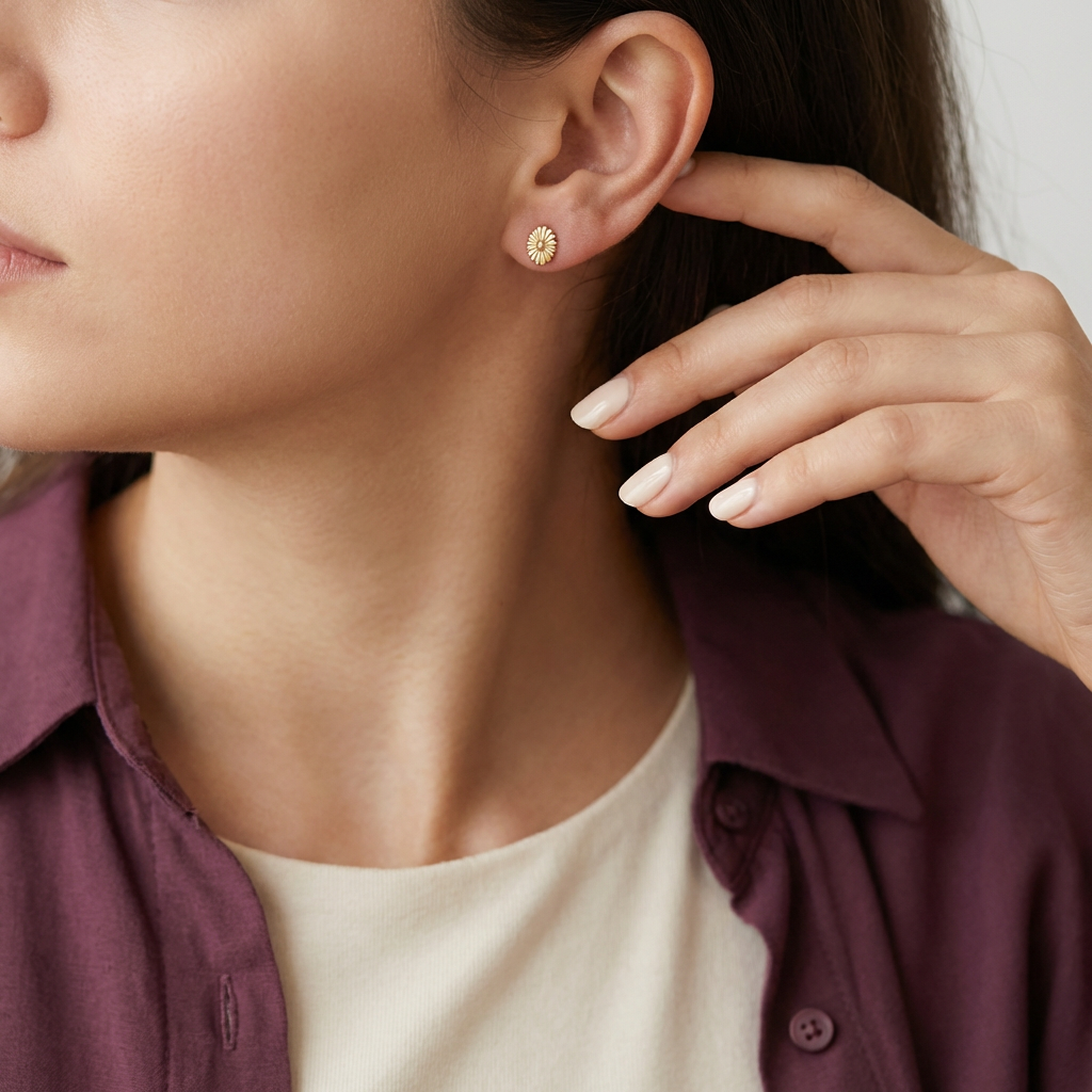 Unit price perأقراط عيار 18 بتصميم زهرة مزخرفة صغيرة، تبرز أناقة إطلالتك اليومية وتخطف الأنظار.