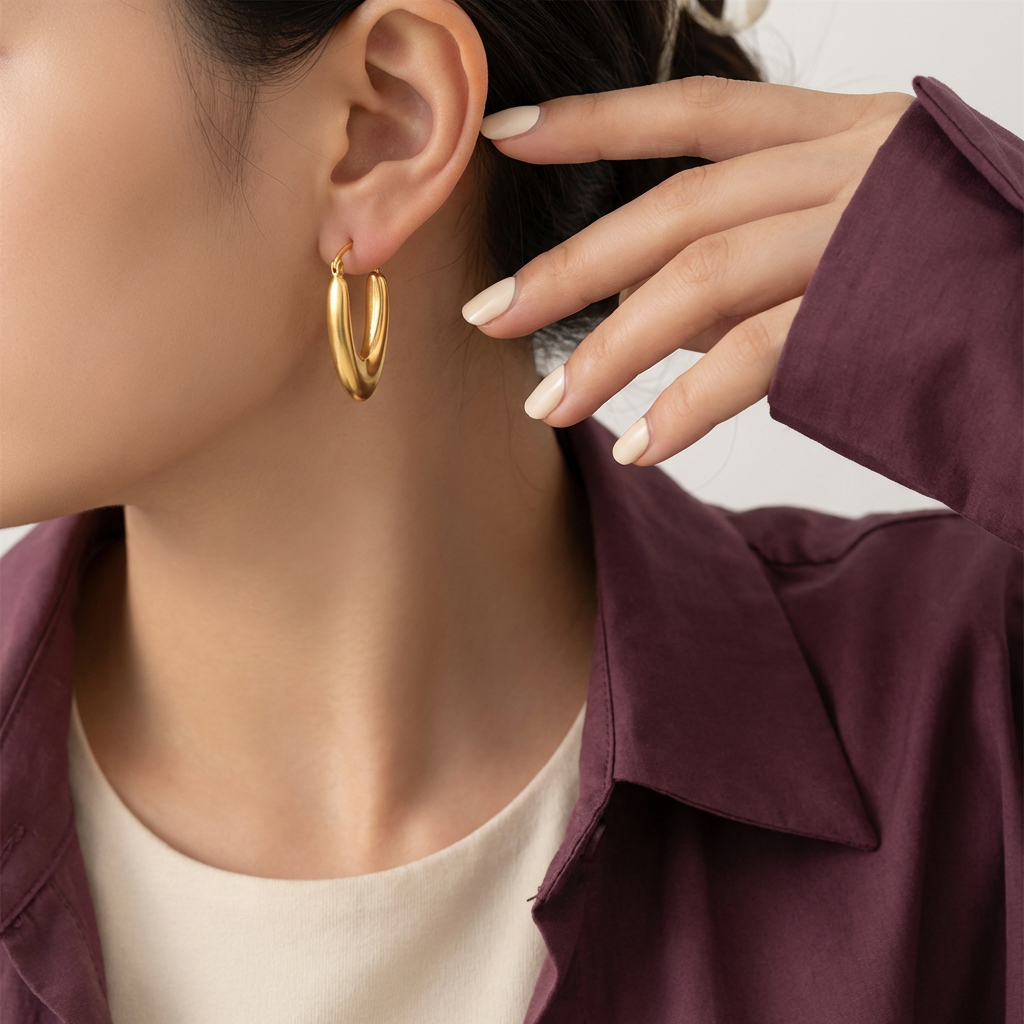 Unit price perأقراط عيار 21، بتصميم هندسي دائري كبير، يسهل تنسيقة مع جميع مجوهراتك المفضلة.