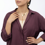 نصف طقم ذهب عيار 18 دوائر بتصميم عقد مفتوح