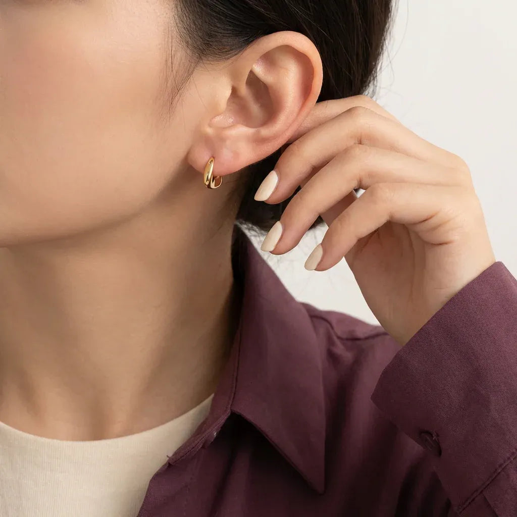 أقراط ذهب عيار 18 بتصميم هندسي أنيق، يجعل تنسيقة مع مجوهراتك اليومية سهل.