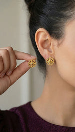 لمحبي الأقراط، ضيفي لمسة أنيقة لإطلالتك بتصميم زهرة بلمسات مزخرفة لتزيد من جمال إطلالتك اليومية.