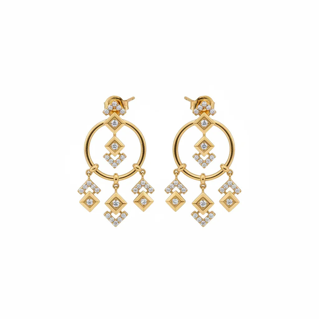 تصميم مميز، حيث يتكون من دائرة كبيرة متداخلة مع تعليقات متدلية، مصنوع من الذهب عيار 18.